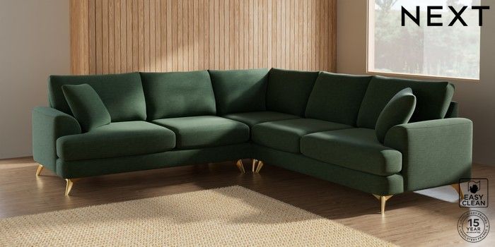 7.2.5 Buy Parker Medium Corner Sofa - Universal Fine Chenille Easy Clean Mid Khaki Green High Metal - Brass from the Next UK online shop Click here to use our accessible website