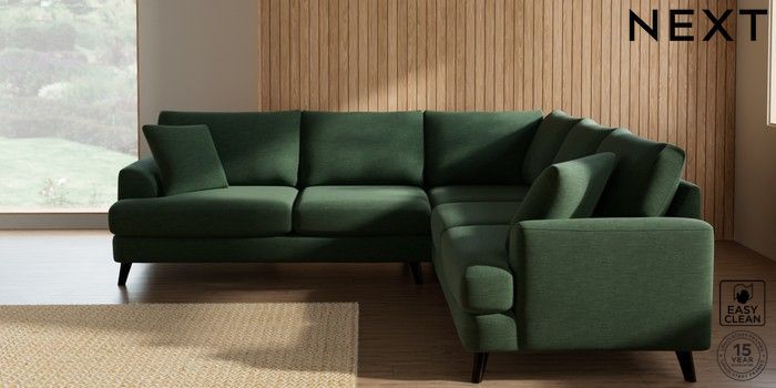 7.2.10 Buy Parker Medium Corner Sofa - Universal Fine Chenille Easy Clean Mid Khaki Green Low Retro Tapered - Dark from the Next UK online shop Click here to use our accessible website