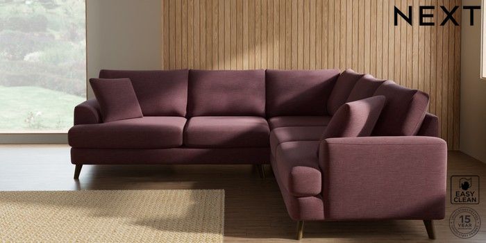 7.2.10 Buy Parker Medium Corner Sofa - Universal Fine Chenille Easy Clean Mid Mulberry Purple Low Retro Tapered - Mid from the Next UK online shop Click here to use our accessible website