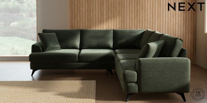 7.0.3 Buy Parker Medium Corner Sofa - Universal Luxe Chenille Mid Green High Metal - Black from the Next UK online shop Click here to use our accessible website