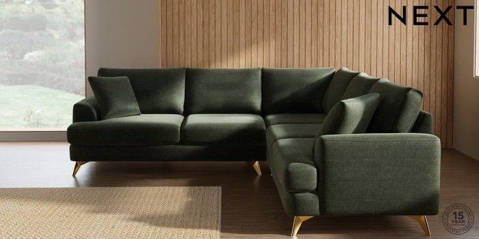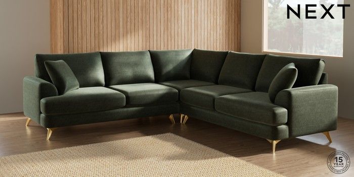 7.0.3 Buy Parker Medium Corner Sofa - Universal Luxe Chenille Mid Green High Metal - Brass from the Next UK online shop Click here to use our accessible website