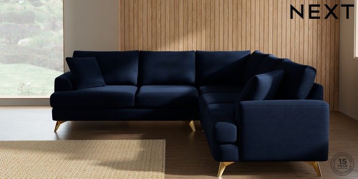 7.2.10 Buy Parker Medium Corner Sofa - Universal Luxe Chenille Navy Blue High Metal - Brass from the Next UK online shop Click here to use our accessible website