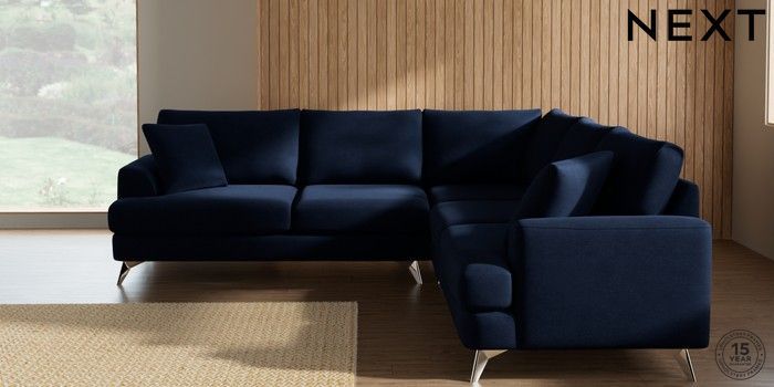 7.2.10 Buy Parker Medium Corner Sofa - Universal Luxe Chenille Navy Blue High Metal - Chrome from the Next UK online shop Click here to use our accessible website
