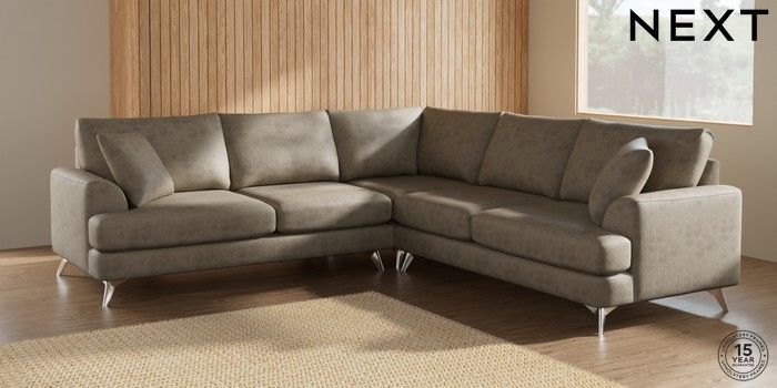 7.2.5 Buy Parker Medium Corner Sofa - Universal Monza Faux Leather Easy Clean Mink Brown High Metal - Chrome from the Next UK online shop Click here to use our accessible website