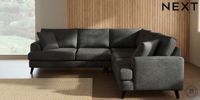 7.2.10 Buy Parker Medium Corner Sofa - Universal Plush Chenille Dark Grey Low Retro Tapered - Dark from the Next UK online shop Click here to use our accessible website