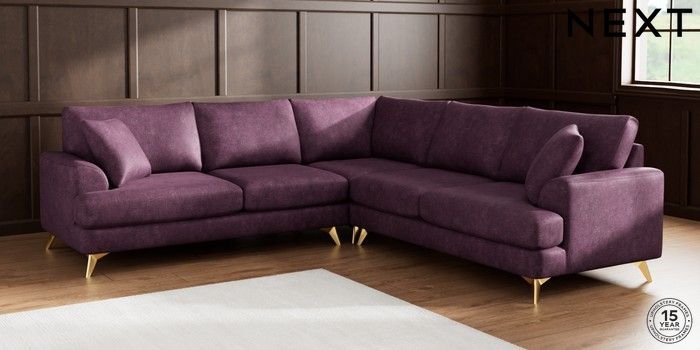 7.2.5 Buy Parker Medium Corner Sofa - Universal Plush Chenille Dark Plum Purple High Metal - Brass from the Next UK online shop Click here to use our accessible website