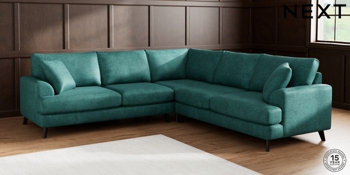 7.2.5 Buy Parker Medium Corner Sofa - Universal Plush Chenille Dark Teal Green Low Retro Tapered - Dark from the Next UK online shop Click here to use our accessible website