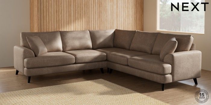 7.2.5 Buy Parker Medium Corner Sofa - Universal Plush Chenille Mid Natural Low Retro Tapered - Dark from the Next UK online shop Click here to use our accessible website