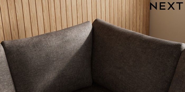 7.2.10 Buy Parker Medium Corner Sofa - Universal Plush Chenille Mink Brown Low Retro Tapered - Dark from the Next UK online shop Click here to use our accessible website