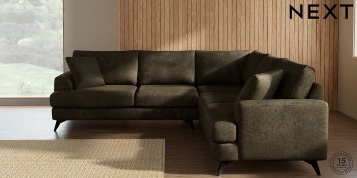 7.2.10 Buy Parker Medium Corner Sofa - Universal Plush Chenille Moss Green High Metal - Black from the Next UK online shop Click here to use our accessible website
