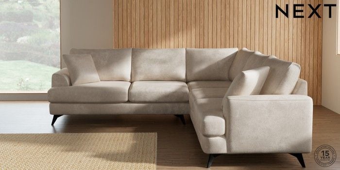 7.2.10 Buy Parker Medium Corner Sofa - Universal Plush Chenille Oyster High Metal - Black from the Next UK online shop Click here to use our accessible website