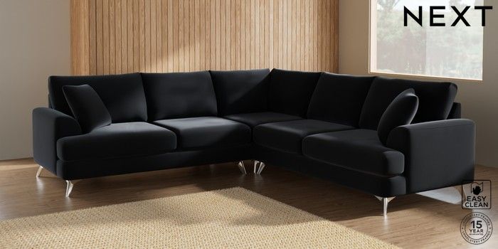 7.2.5 Buy Parker Medium Corner Sofa - Universal Plush Velvet Easy Clean Charcoal Grey High Metal - Chrome from the Next UK online shop Click here to use our accessible website