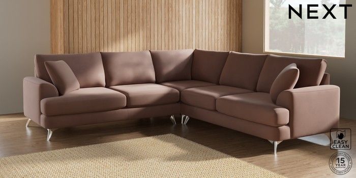 7.2.5 Buy Parker Medium Corner Sofa - Universal Plush Velvet Easy Clean Mid Natural High Metal - Chrome from the Next UK online shop Click here to use our accessible website