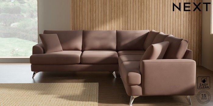 7.2.10 Buy Parker Medium Corner Sofa - Universal Plush Velvet Easy Clean Mid Natural High Metal - Chrome from the Next UK online shop Click here to use our accessible website