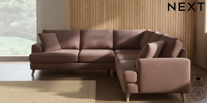 7.2.10 Buy Parker Medium Corner Sofa - Universal Plush Velvet Easy Clean Mid Natural Low Retro Tapered - Light from the Next UK online shop Click here to use our accessible website
