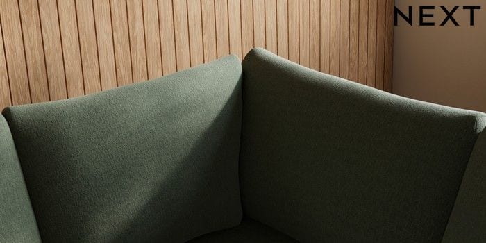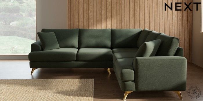 7.2.10 Buy Parker Medium Corner Sofa - Universal Relaxed Linen Look Dark Green High Metal - Brass from the Next UK online shop Click here to use our accessible website
