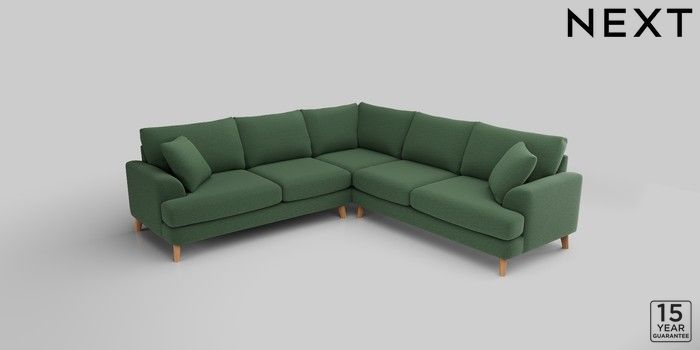 6.12.1 Buy Parker Medium Corner Sofa - Universal Relaxed Linen Look Dark Green Low Retro Tapered - Light from the Next UK online shop Click here to use our accessible website