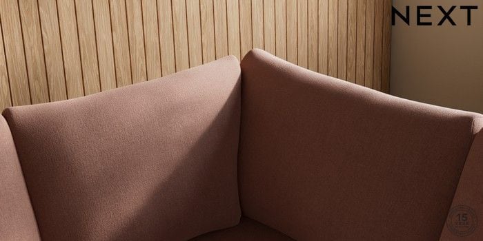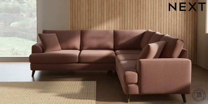 7.2.10 Buy Parker Medium Corner Sofa - Universal Relaxed Linen Look Light Rust Brown Low Retro Tapered - Mid from the Next UK online shop Click here to use our accessible website