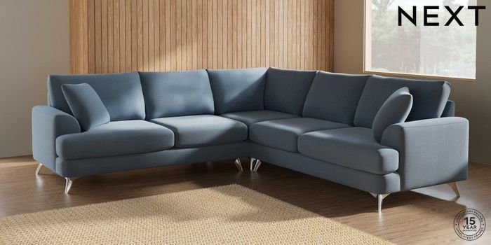 7.2.5 Buy Parker Medium Corner Sofa - Universal Relaxed Linen Look Mid Blue High Metal - Chrome from the Next UK online shop Click here to use our accessible website