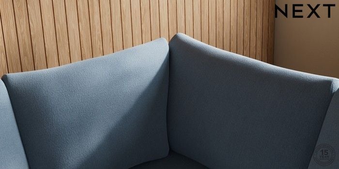 7.2.10 Buy Parker Medium Corner Sofa - Universal Relaxed Linen Look Mid Blue High Metal - Chrome from the Next UK online shop Click here to use our accessible website