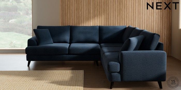 7.0.3 Buy Parker Medium Corner Sofa - Universal Ripple Chenille Dark Blue Low Retro Tapered - Dark from the Next UK online shop Click here to use our accessible website