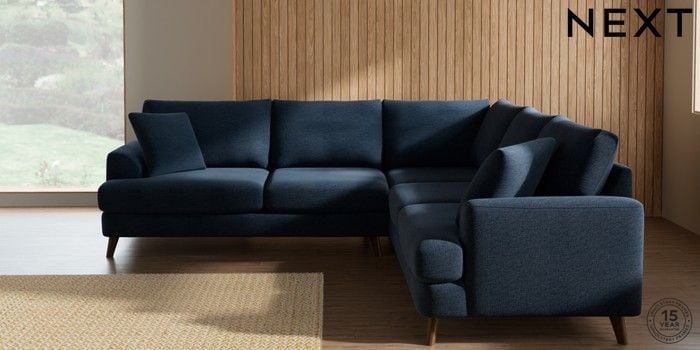 7.0.3 Buy Parker Medium Corner Sofa - Universal Ripple Chenille Dark Blue Low Retro Tapered - Mid from the Next UK online shop Click here to use our accessible website