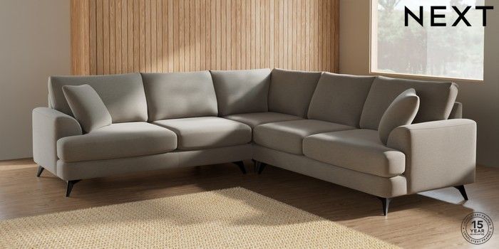 7.2.5 Buy Parker Medium Corner Sofa - Universal Ripple Chenille Light Natural High Metal - Black from the Next UK online shop Click here to use our accessible website