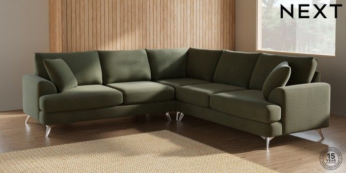 7.2.5 Buy Parker Medium Corner Sofa - Universal Ripple Chenille Mid Moss Green High Metal - Chrome from the Next UK online shop Click here to use our accessible website
