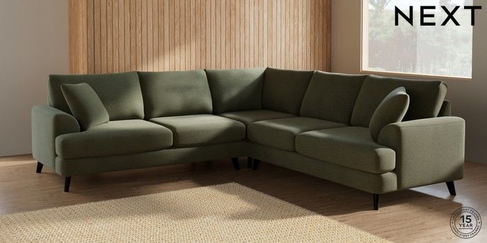 7.2.5 Buy Parker Medium Corner Sofa - Universal Ripple Chenille Mid Moss Green Low Retro Tapered - Dark from the Next UK online shop Click here to use our accessible website