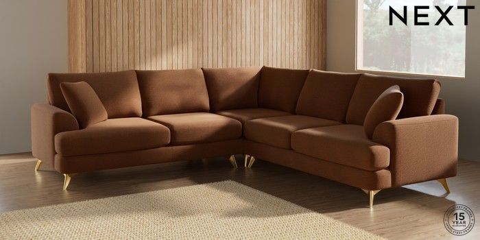 7.2.5 Buy Parker Medium Corner Sofa - Universal Ripple Chenille Mid Rust Brown High Metal - Brass from the Next UK online shop Click here to use our accessible website