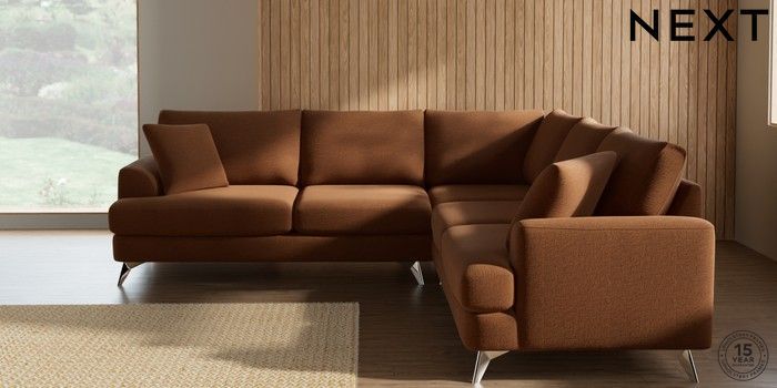 7.2.10 Buy Parker Medium Corner Sofa - Universal Ripple Chenille Mid Rust Brown High Metal - Chrome from the Next UK online shop Click here to use our accessible website