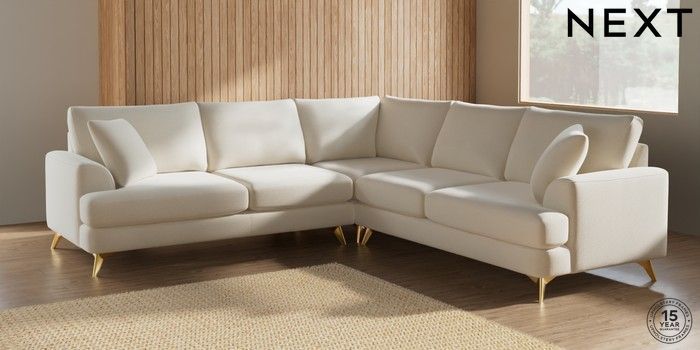 7.2.5 Buy Parker Medium Corner Sofa - Universal Ripple Chenille Oyster High Metal - Brass from the Next UK online shop Click here to use our accessible website