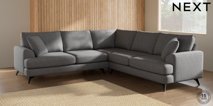 7.2.5 Buy Parker Medium Corner Sofa - Universal Studio Chenille Mid Grey High Metal - Black from the Next UK online shop Click here to use our accessible website