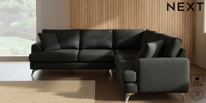 7.2.10 Buy Parker Medium Corner Sofa - Universal Tweedy Blend Easy Clean Charcoal Grey High Metal - Chrome from the Next UK online shop Click here to use our accessible website