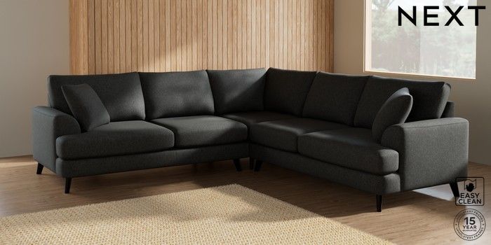 7.2.5 Buy Parker Medium Corner Sofa - Universal Tweedy Blend Easy Clean Charcoal Grey Low Retro Tapered - Dark from the Next UK online shop Click here to use our accessible website