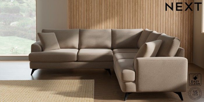 7.3.1 Buy Parker Medium Corner Sofa - Universal Tweedy Blend Easy Clean Light Dove Natural High Metal - Black from the Next UK online shop Click here to use our accessible website