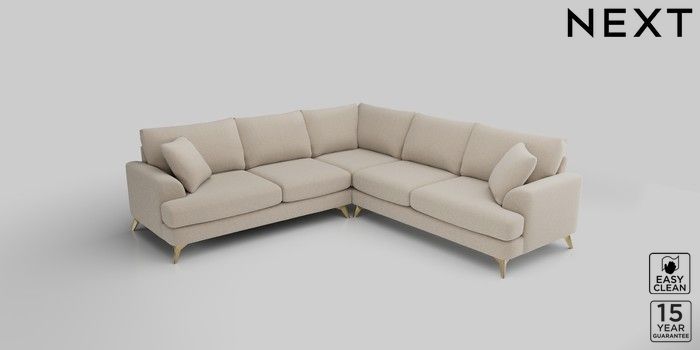 6.10.9 Buy Parker Medium Corner Sofa - Universal Tweedy Blend Easy Clean Oyster High Metal - Brass from the Next UK online shop Click here to use our accessible website