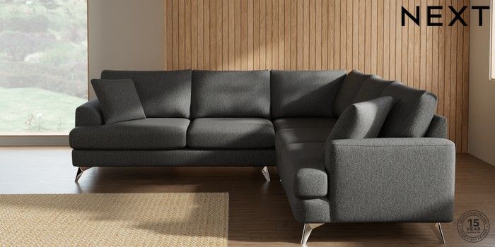 7.2.10 Buy Parker Medium Corner Sofa - Universal Tweedy Chenille Dark Grey High Metal - Chrome from the Next UK online shop Click here to use our accessible website