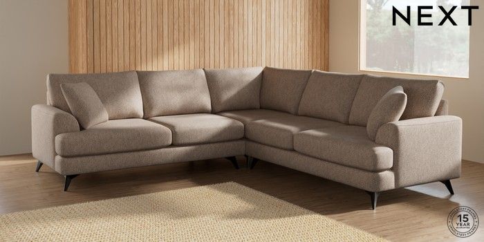 7.2.5 Buy Parker Medium Corner Sofa - Universal Tweedy Chenille Mid Natural High Metal - Black from the Next UK online shop Click here to use our accessible website