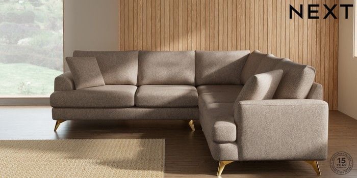 7.2.10 Buy Parker Medium Corner Sofa - Universal Tweedy Chenille Mid Natural High Metal - Brass from the Next UK online shop Click here to use our accessible website