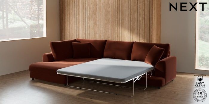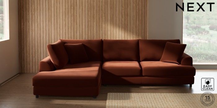 7.2.10 Buy Parker Corner Chaise Bed - Left Hand Plush Velvet Easy Clean Ginger Orange Glide from the Next UK online shop Click here to use our accessible website