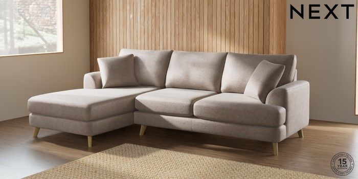 7.2.5 Buy Parker Medium Sofa Chaise - Left Hand Boucle Chenille Light Natural Low Retro Tapered - Light from the Next UK online shop Click here to use our accessible website