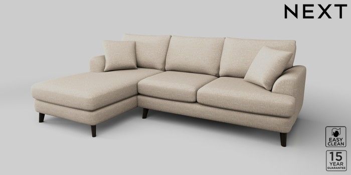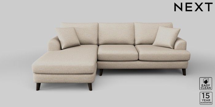 6.12.1 Buy Parker Medium Sofa Chaise - Left Hand Boucle Weave Easy Clean Dark Natural Low Retro Tapered - Dark from the Next UK online shop Click here to use our accessible website