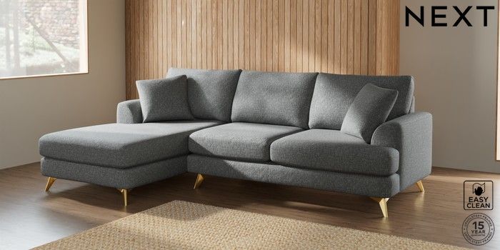 7.2.5 Buy Parker Medium Sofa Chaise - Left Hand Chunky Boucle Easy Clean Mid Grey High Metal - Brass from the Next UK online shop Click here to use our accessible website