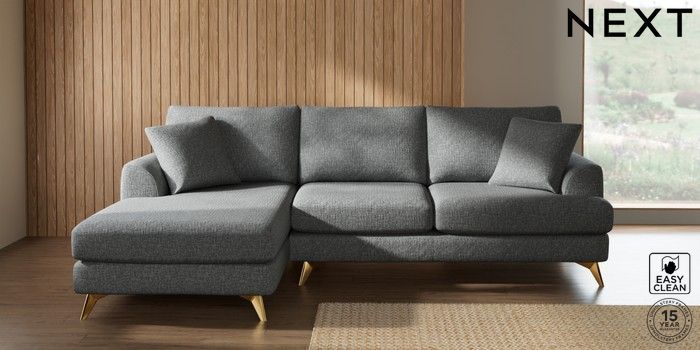 7.2.10 Buy Parker Medium Sofa Chaise - Left Hand Chunky Boucle Easy Clean Mid Grey High Metal - Brass from the Next UK online shop Click here to use our accessible website
