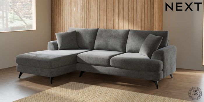 7.2.5 Buy Parker Medium Sofa Chaise - Left Hand Chunky Chenille Dark Grey High Metal - Black from the Next UK online shop Click here to use our accessible website