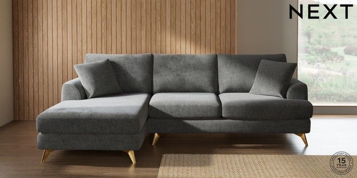 7.2.10 Buy Parker Medium Sofa Chaise - Left Hand Chunky Chenille Dark Grey High Metal - Brass from the Next UK online shop Click here to use our accessible website