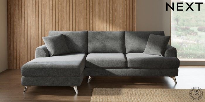7.2.10 Buy Parker Medium Sofa Chaise - Left Hand Chunky Chenille Dark Grey High Metal - Chrome from the Next UK online shop Click here to use our accessible website