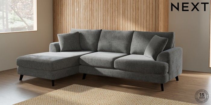 7.2.5 Buy Parker Medium Sofa Chaise - Left Hand Chunky Chenille Dark Grey Low Retro Tapered - Dark from the Next UK online shop Click here to use our accessible website