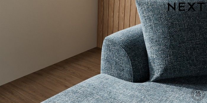 7.2.10 Buy Parker Medium Sofa Chaise - Left Hand Chunky Chenille Dark Navy Blue High Metal - Brass from the Next UK online shop Click here to use our accessible website